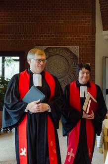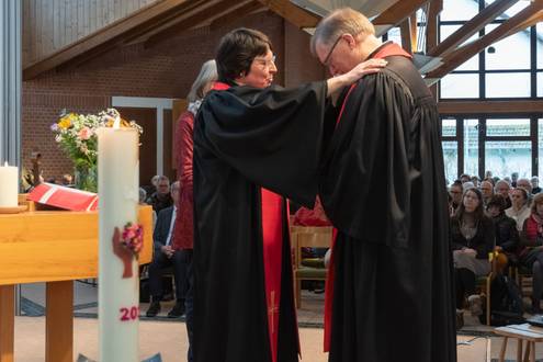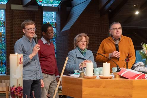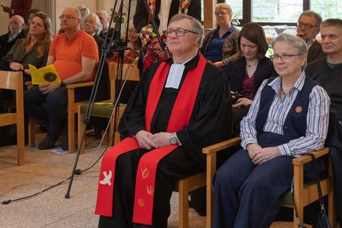 Der Verabschiedungsgottesdienst war geprägt von Dankbarkeit, aber auch von Wehmut angesichts des Abschieds. Die Entpflichtung wurde in der Liturgie deutlich, indem Thomas Lehmkühler nach seiner Predigt aus der Reihe der Gottesdienstleitenden auf die Seite der Gemeinde wechselte. So wurde tatsächlich auch eine Lücke sichtbar. Die Pfarrstelle wird noch einmal für den Zeitraum bis Ende 2031 ausgeschrieben. Nun sind alle gespannt auf hoffentlich bald eingehende Bewerbungen.